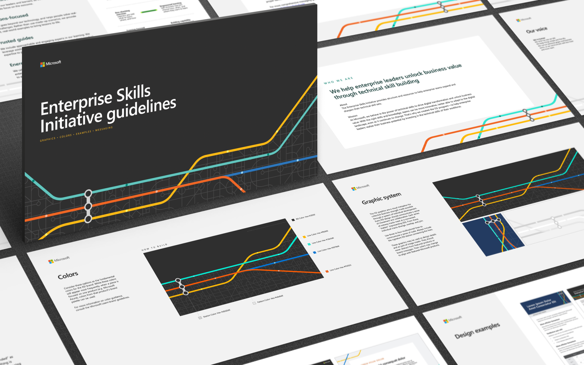 - A cohesive brand system incorporating vibrant colors, dynamic typography, and engaging layouts aligned with the Microsoft Learn style guide.