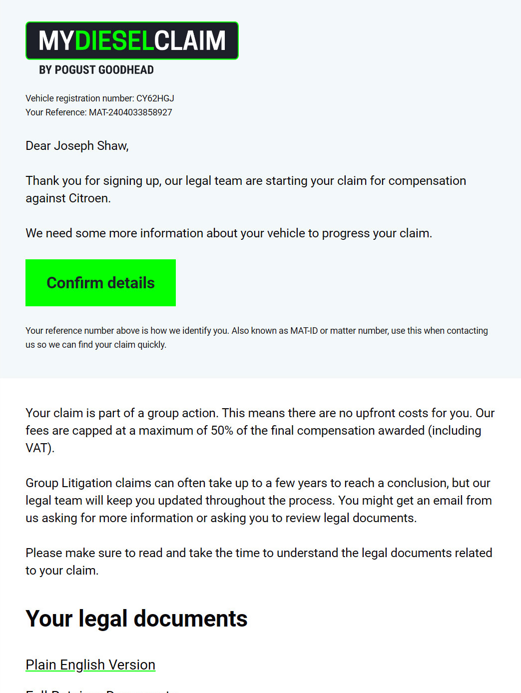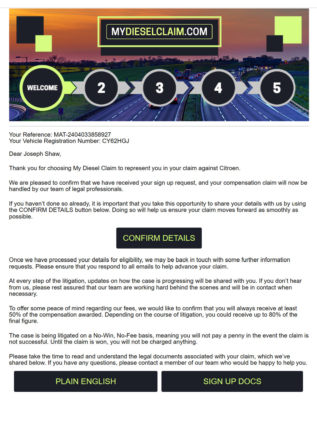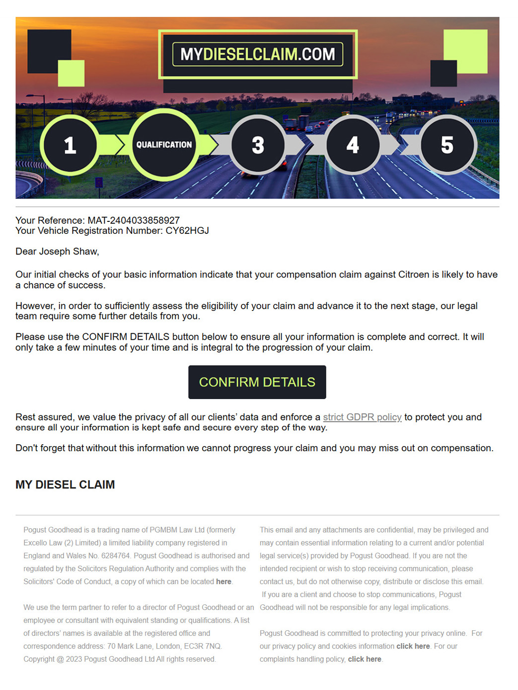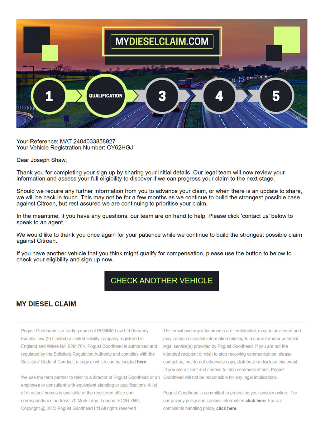 Since its launch in 2020, My Diesel Claim has grown into one of Pogust Goodhead’s flagship start-up cases, achieving rapid success with 2 million sign-ups by early 2023.