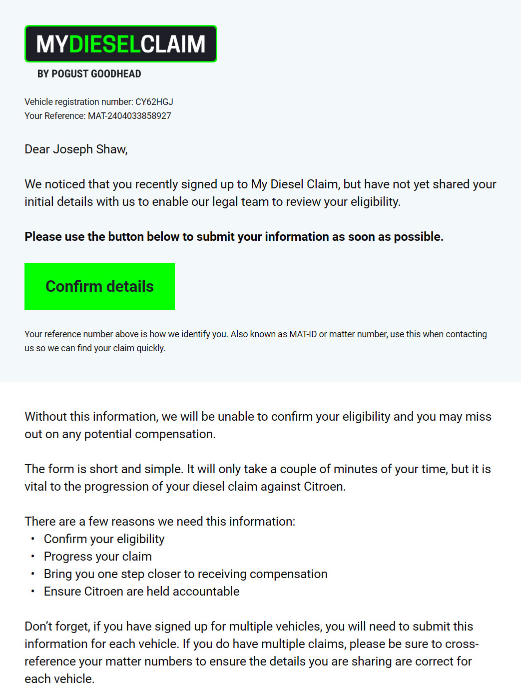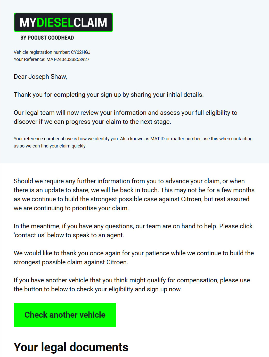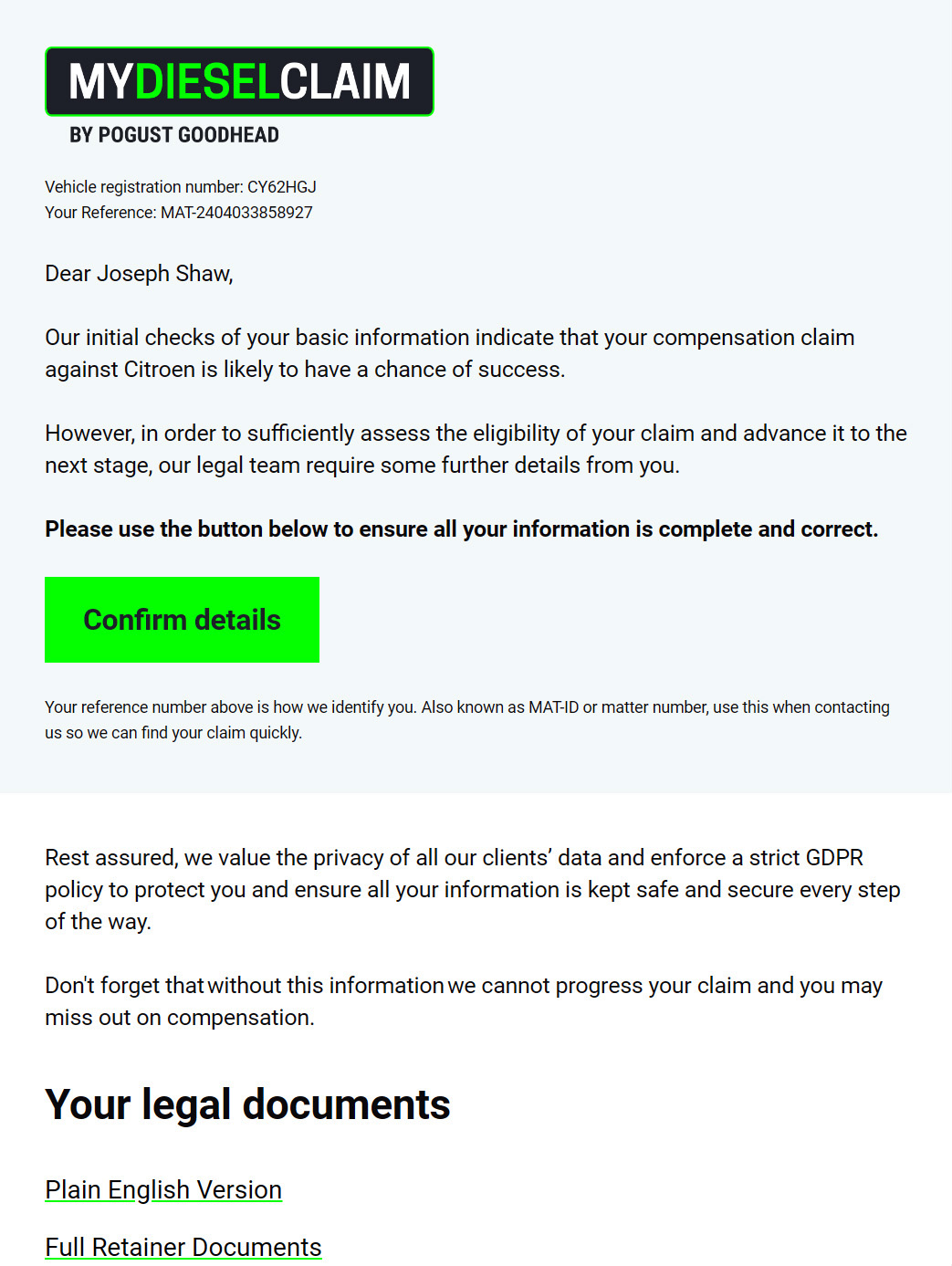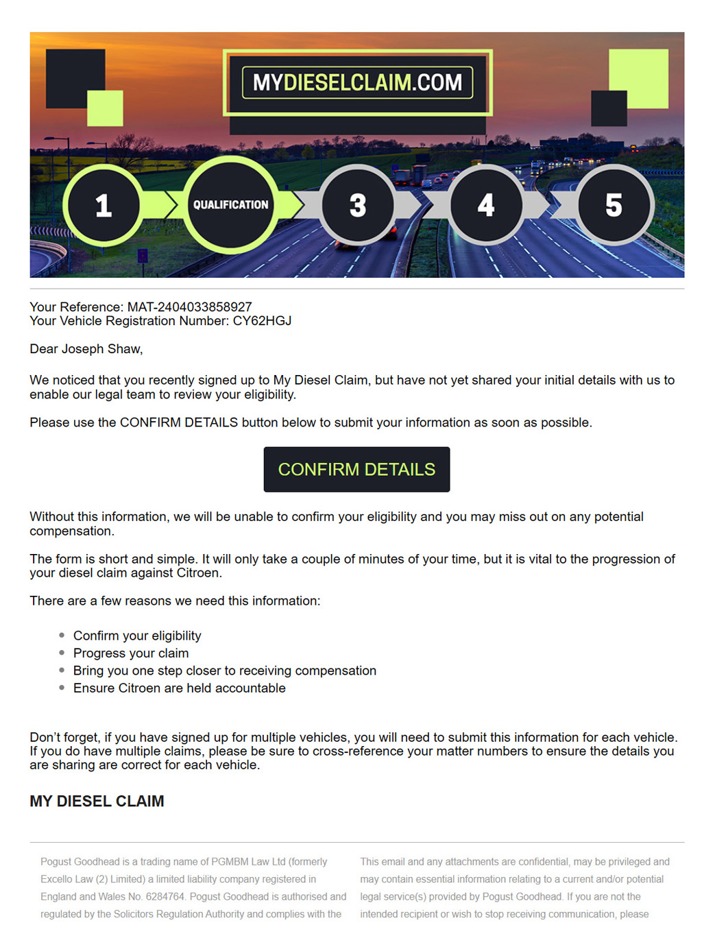 Since its launch in 2020, My Diesel Claim has grown into one of Pogust Goodhead’s flagship start-up cases, achieving rapid success with 2 million sign-ups by early 2023.