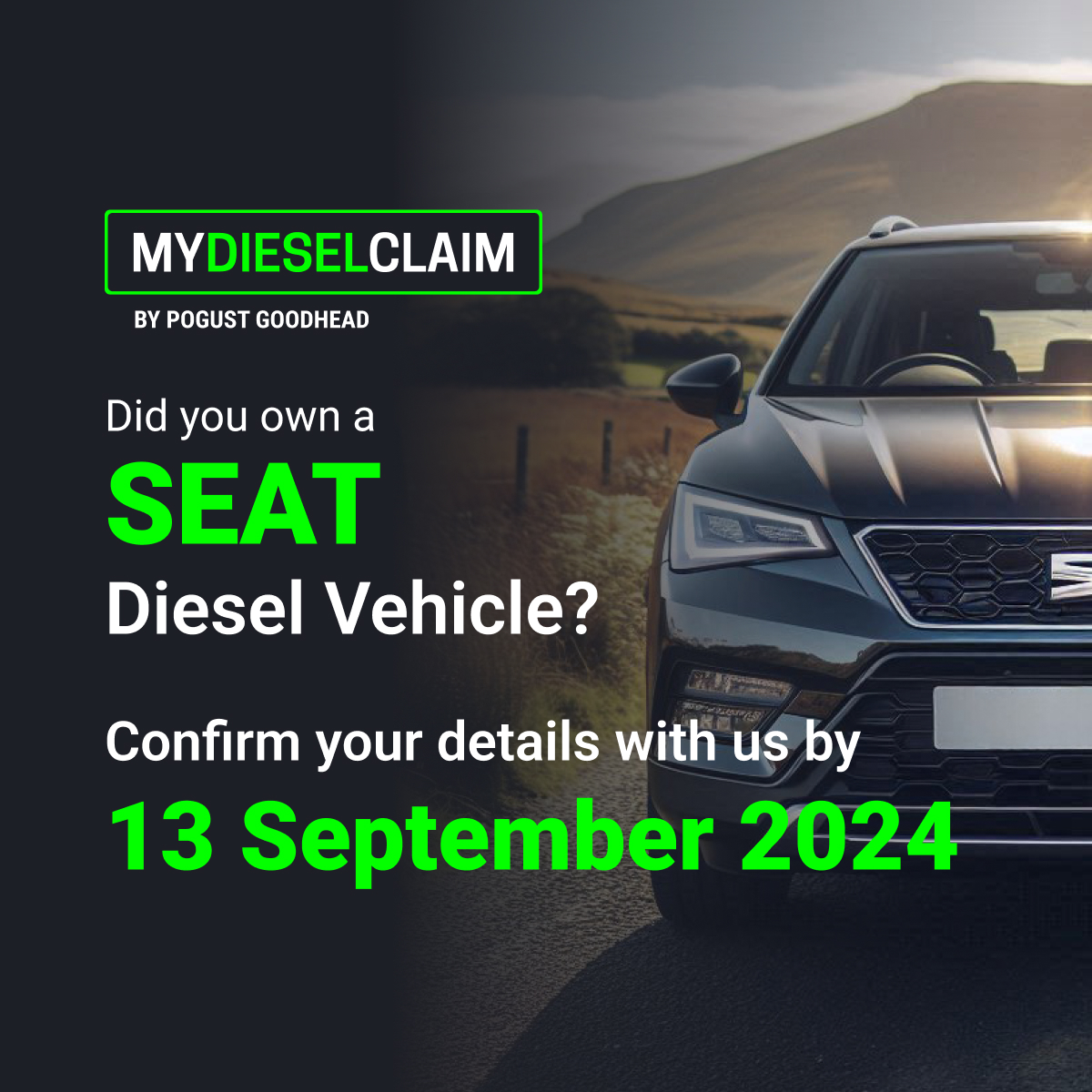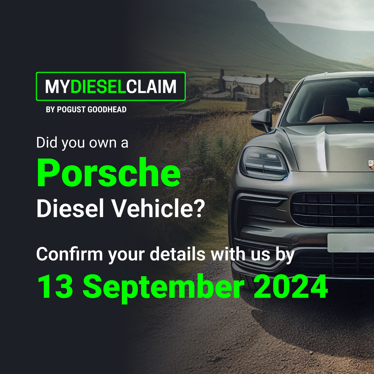 My Diesel Claim is a campaign led by Pogust Goodhead, aimed at investigating diesel emissions fraud by car manufacturers between 2009 and 2020, with the goal of securing compensation for eligible drivers.