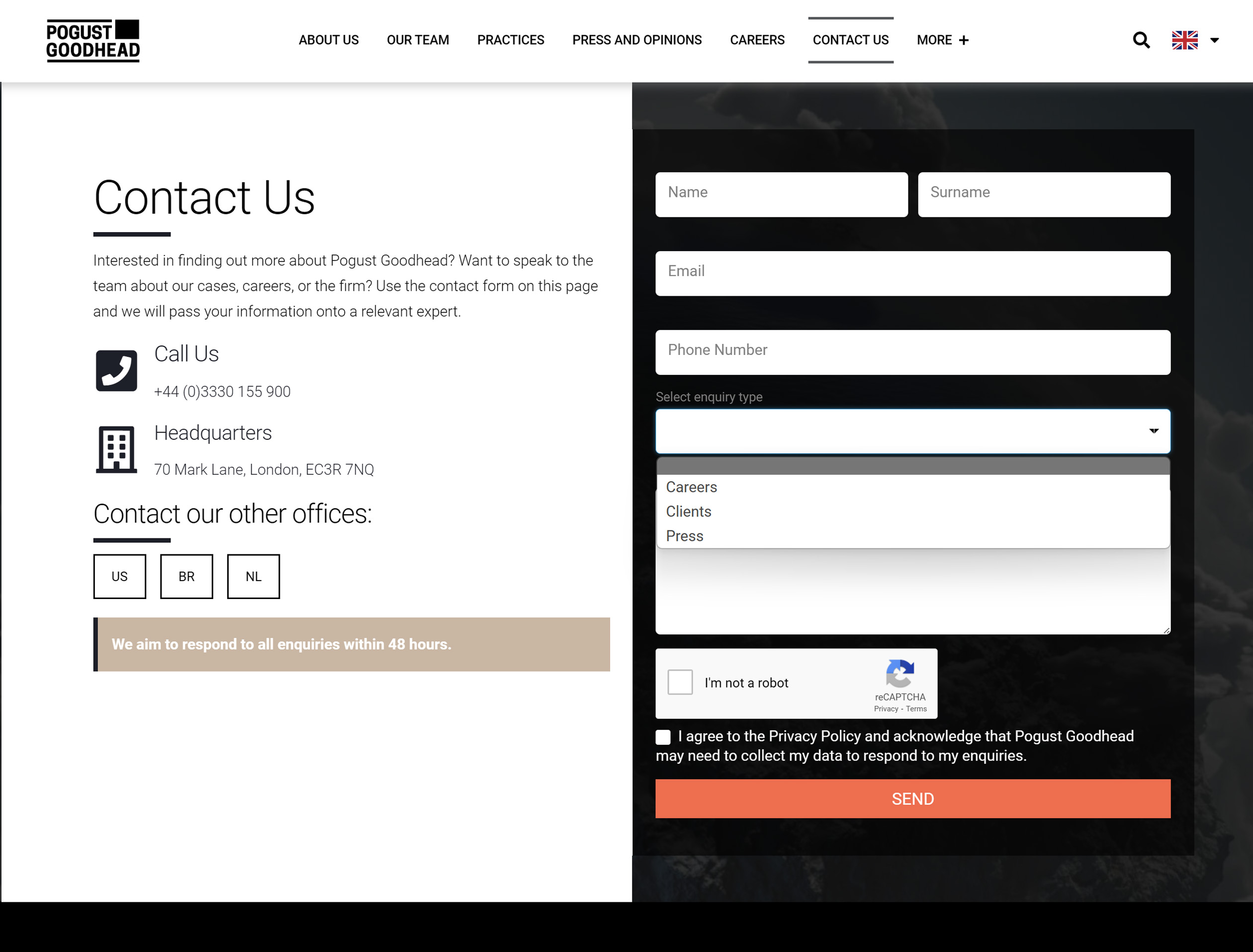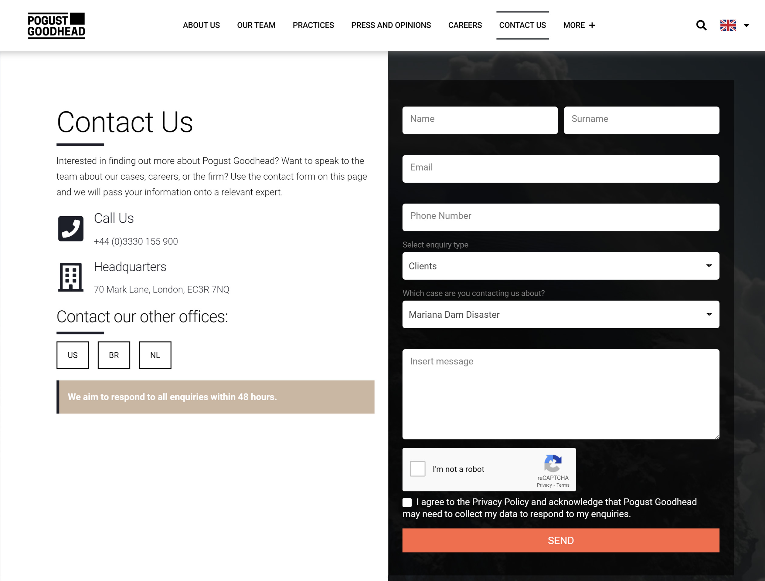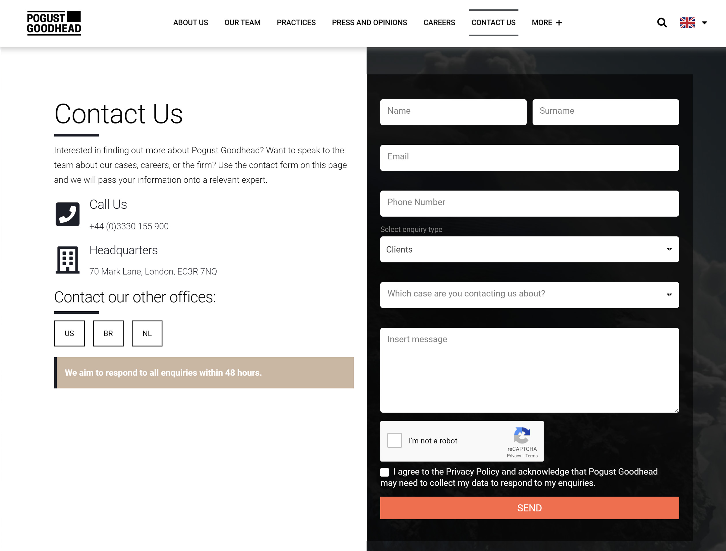 As Pogust Goodhead transitioned to an expansion stage, the existing website no longer met the firm’s evolving needs. It lacked the functionality, design, and multilingual capabilities required to engage a diverse, global audience, including claimants, investors, and press.