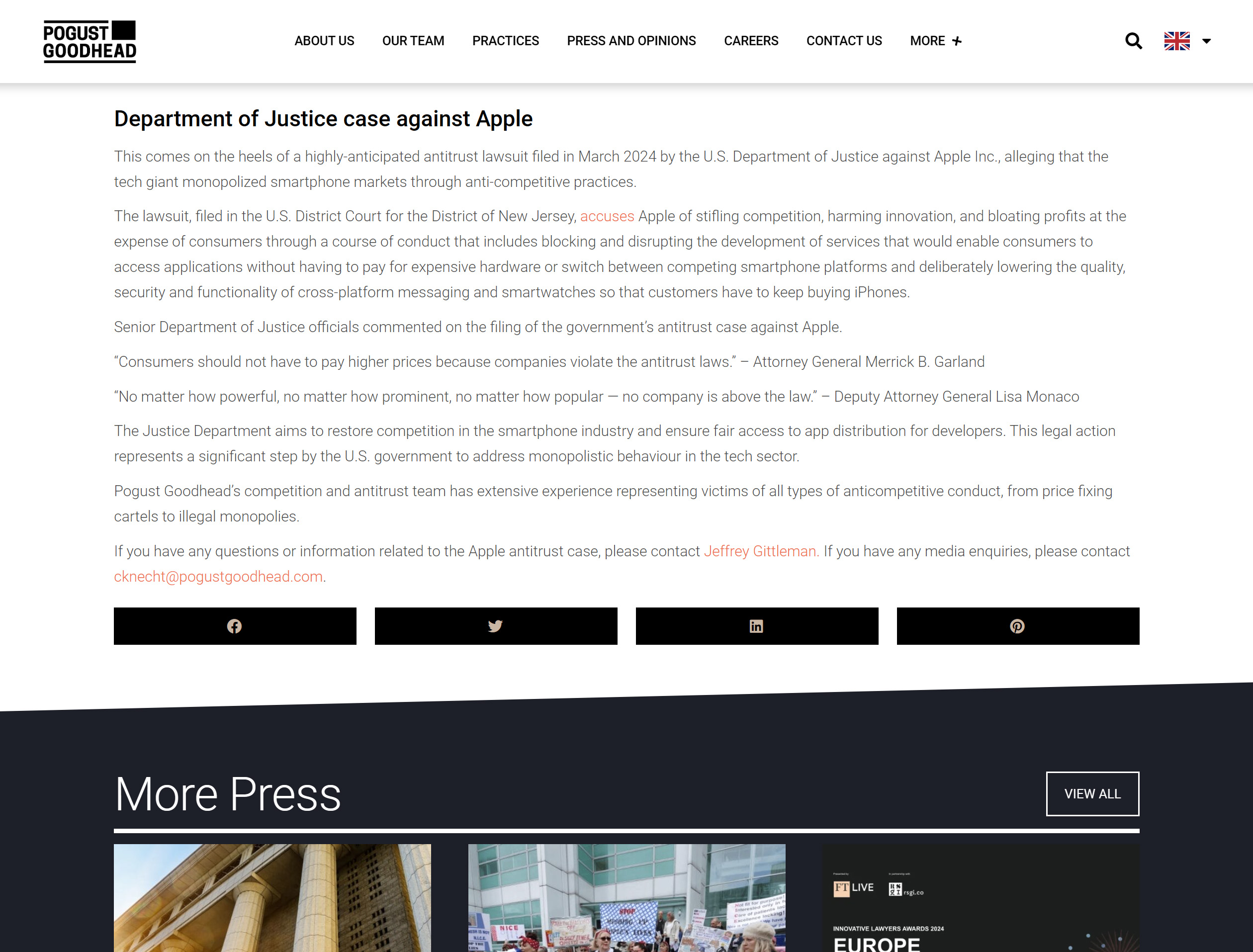 The new website aims to enhance user experience, streamline client acquisition, tailor messaging for key audiences, and reflect Pogust Goodhead’s global reach and expertise.
